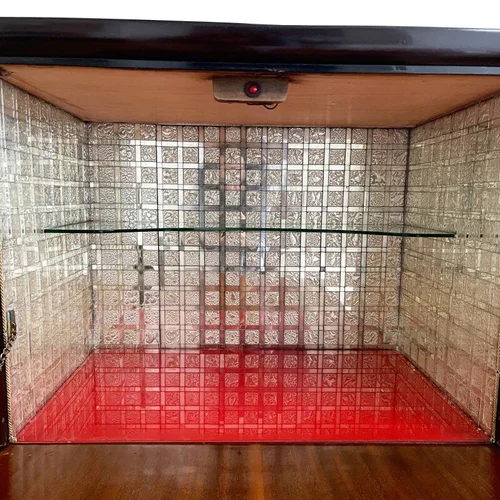 Good condition, some light marks in the interior compartments with shelves. Light wear throughout consistent with age