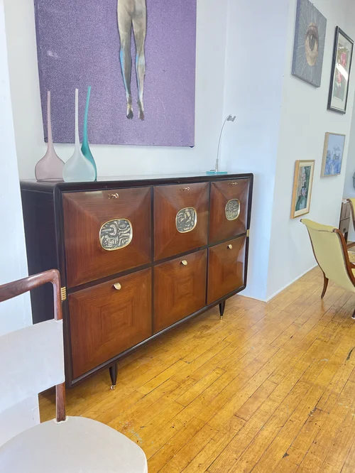 Browse our collection of recently sold storage and table furniture featuring previously sold Italian mid-century tables, console tables, and storage cabinets. Spanning the art deco period through the 1970s, our distinctive selection showcases a treasure trove of Mid Century designs from Italy, carefully acquired during our sourcing trips and adored by our esteemed clientele. Explore the elegance of storage cabinets and console tables crafted by renowned artisans like Paolo Buffa and Osvaldo Borsani. Discover the impeccable craftsmanship of dining tables by Mario Bellini and the timeless charm of bookcases by Franco Albini, among other esteemed designers. Each piece in our collection holds more than just its aesthetic appeal. These remarkable mid-century tables, console tables, storage cabinets, and seating options embody the essence of precious wood and unparalleled craftsmanship. Handcrafted by skilled artisans during a time when attention to detail and quality were paramount, these pieces stand as a testament to the artistry of the era. With their exquisite woodwork and meticulous detailing, they showcase the beauty that can only be achieved through the hands of master craftsmen, evoking a sense of authenticity and timeless charm. Experience the warmth and richness of these artisanal creations, where every grain and curve tells a story of dedication and passion.