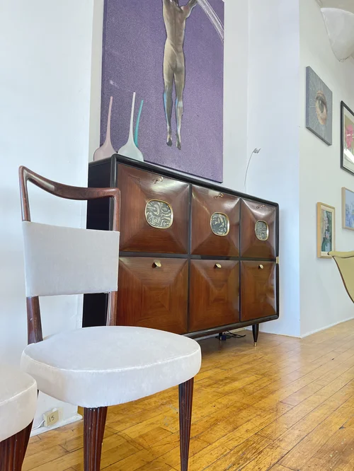 In addition to our remarkable past collection of Italian mid-century tables, console tables, and storage cabinets, we also offer a range of exquisite seating options that perfectly complement these iconic pieces. From sleek lounge chairs by Gio Ponti to sculptural armchairs by Carlo Mollino, our curated selection reflects the diverse creativity of Italian designers during the mid-century era. Immerse yourself in the elegance and sophistication of Italian design history as you explore our curated collection of furniture, where each piece tells a captivating story of craftsmanship and artistic vision
