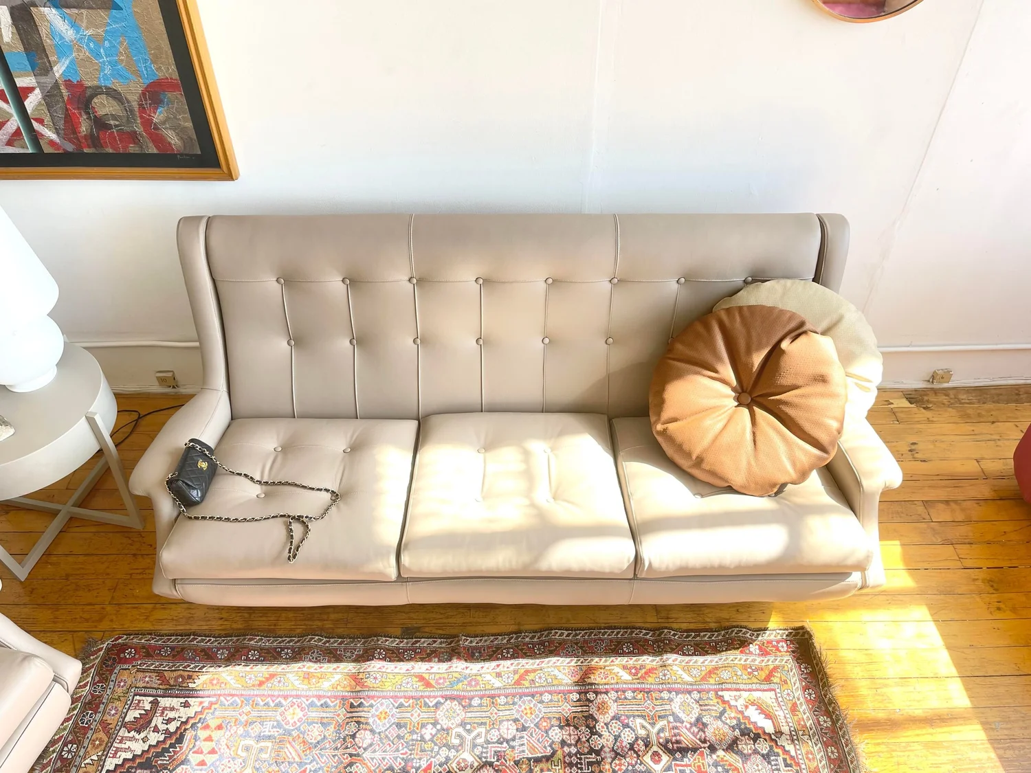 Large Italian Luxury Leather Beige Pillow by Arflex | top view image