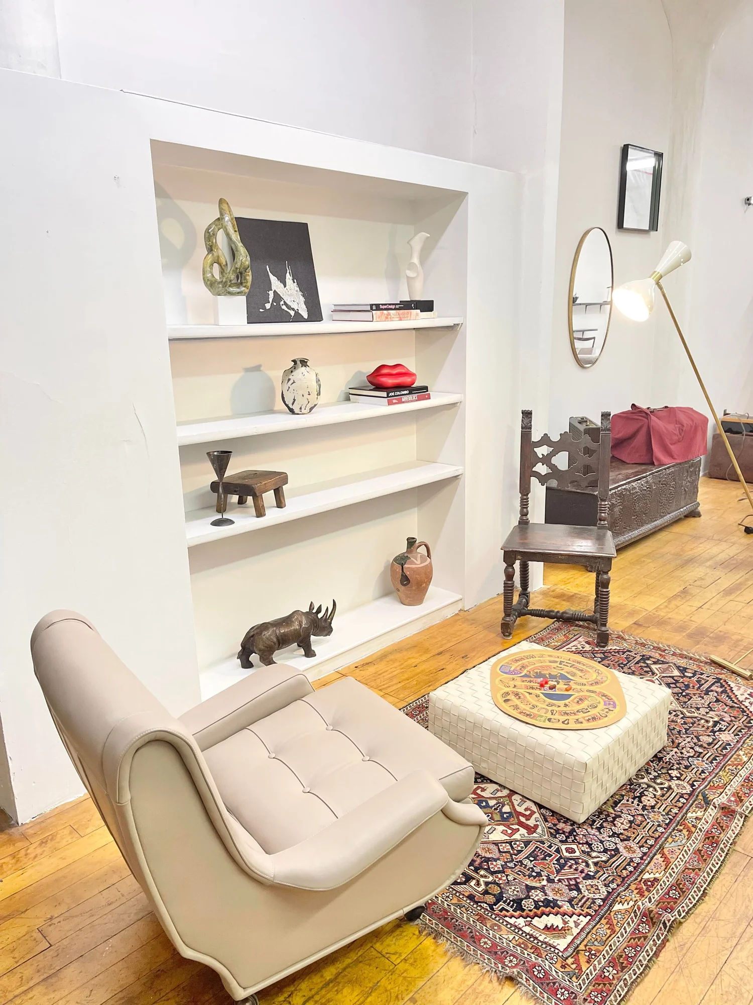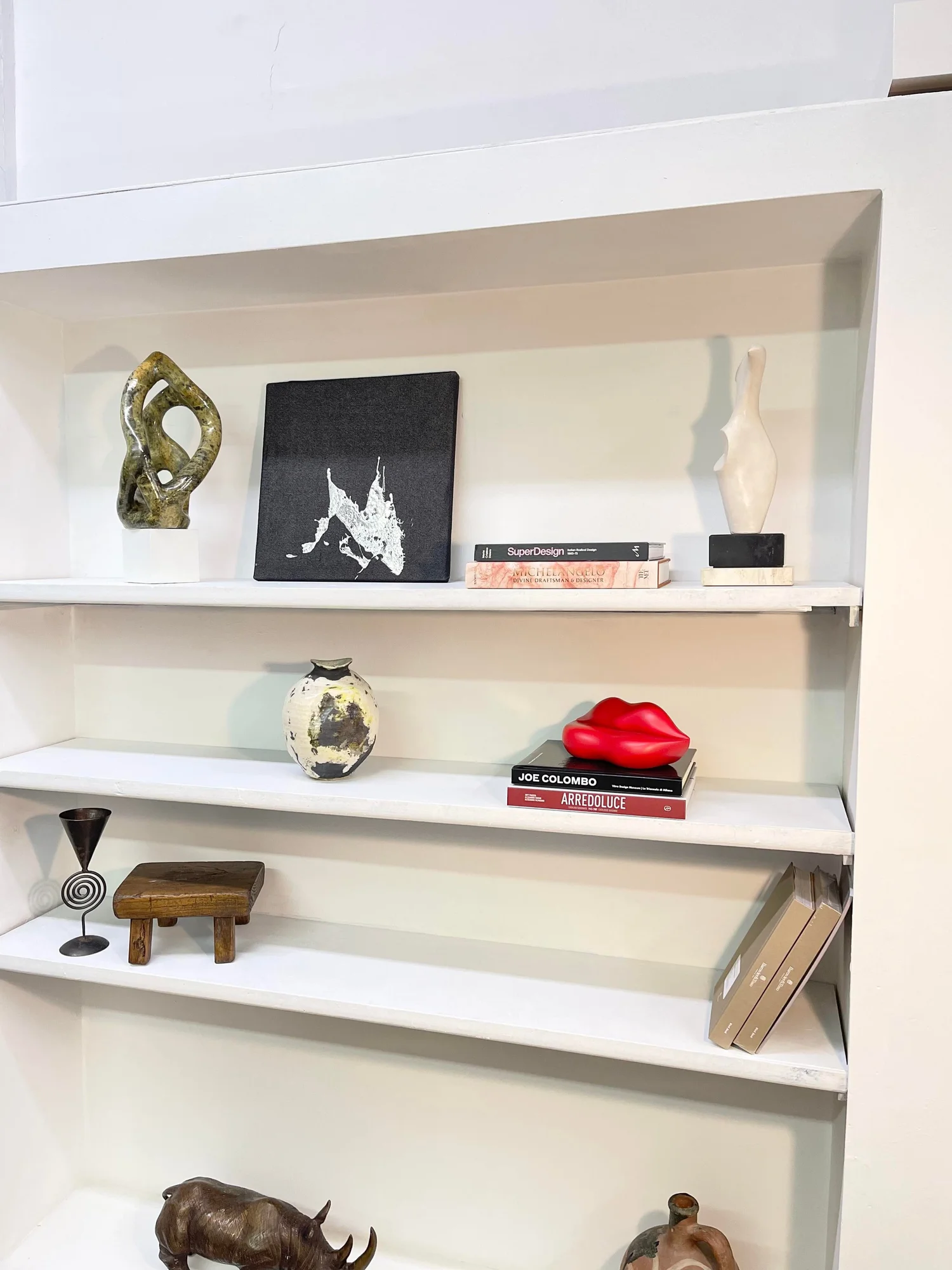 Vintage Home Decor Sculpture White and Black | bookcase and chair